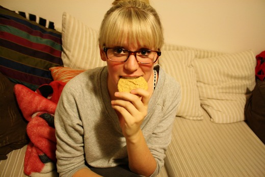 ReplyDeleteOh, my gosh. That picture of you eating the cookies is just so fabulous. The bangs, the classes, the bun....the cookie...Everything. I think we'd be friends in real life.