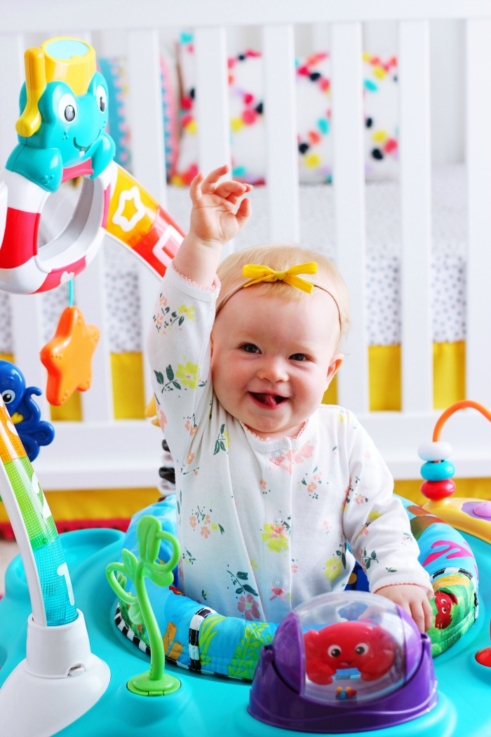 she was bored of being on her back or stomach. When we got the Baby Einstein 2-in-1 Lights & Sea Activity Gym & Saucer it was a game changer! This was the crème de la crème of activity!